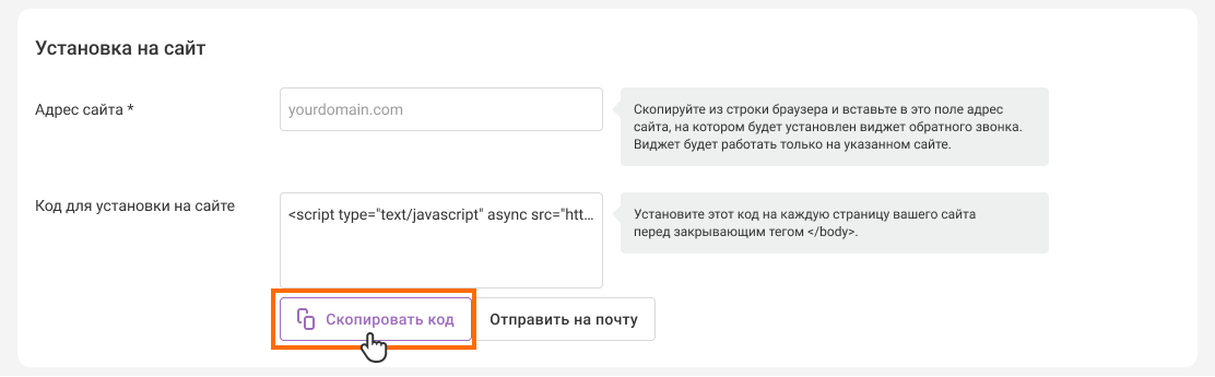 9. Укажите адрес сайта, на котором будет установлен виджет обратного звонка с сайта.