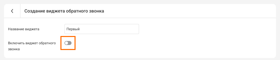 Далее вы перейдете в окно создания виджета обратного звонка. Укажите любое имя виджета и нажмите на переключатель «Включить виджет обратного звонка», чтобы открыть его настройки.