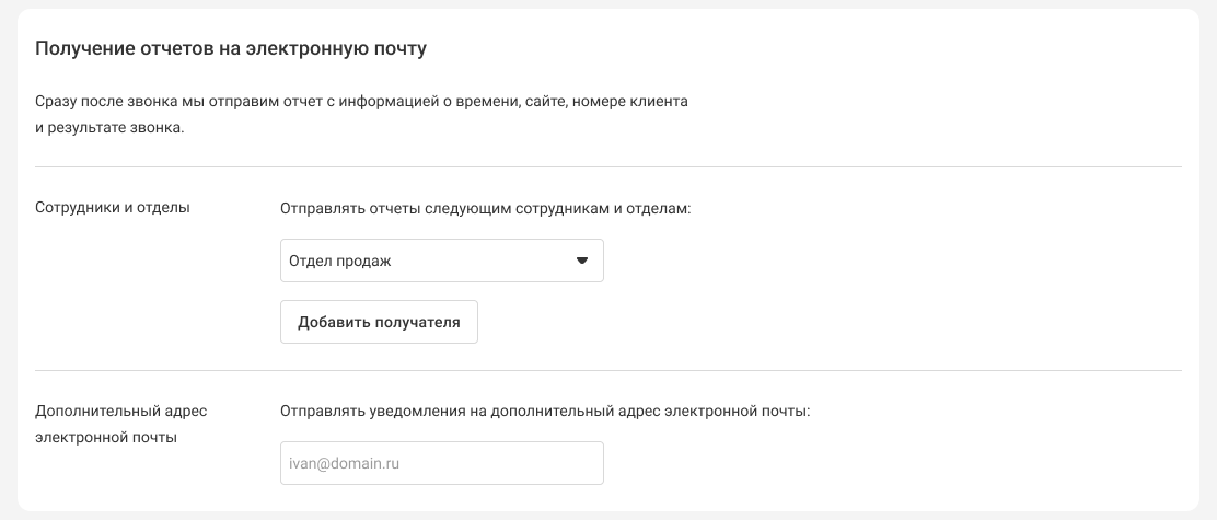 8. Вы можете получать отчеты о каждом звонке, заказанном с помощью виджета обратного звонка с сайта. Для этого выберите, кому из сотрудников (или отделов) АТС будет отправлять эти отчеты.