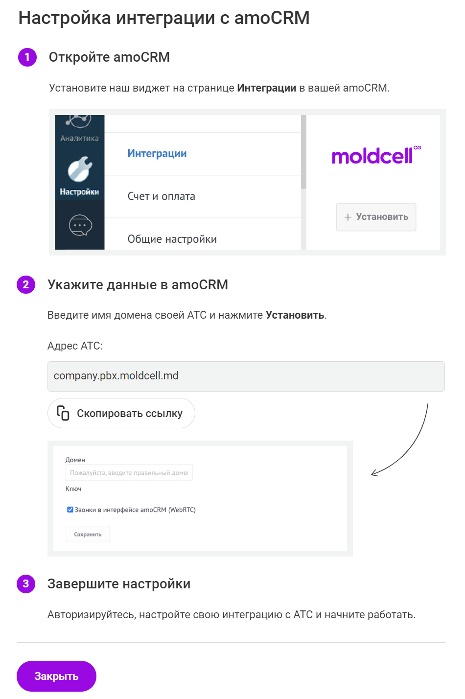Настроить интеграцию могут только пользователи с правами администратора в обеих системах.0. Интеграция с Kommo временно настраивается через виджет amoCRM. Чтобы в настройках вашей АТС отобразился этот виджет, перейдите в профиль.