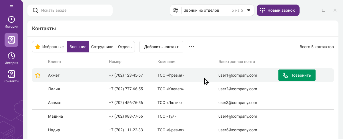 Чтобы быстро найти нужного клиента, коллегу или канал, воспользуйтесь единым окном поиска. Прямо из окна поиска можно написать или позвонить контакту.