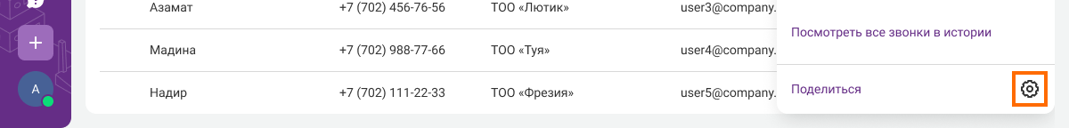 В карточке контакта на вкладке «О контакте» нажмите на шестеренку.