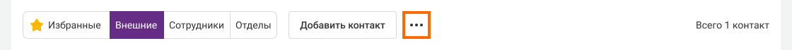 1. В разделе «Контакты» справа от кнопки «Добавить контакт» нажмите на три точки и ниже — на кнопку «Импортировать контакты».