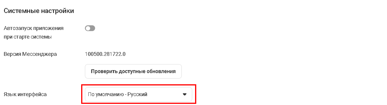 Настройки в Корпоративном мессенджере включают в себя: