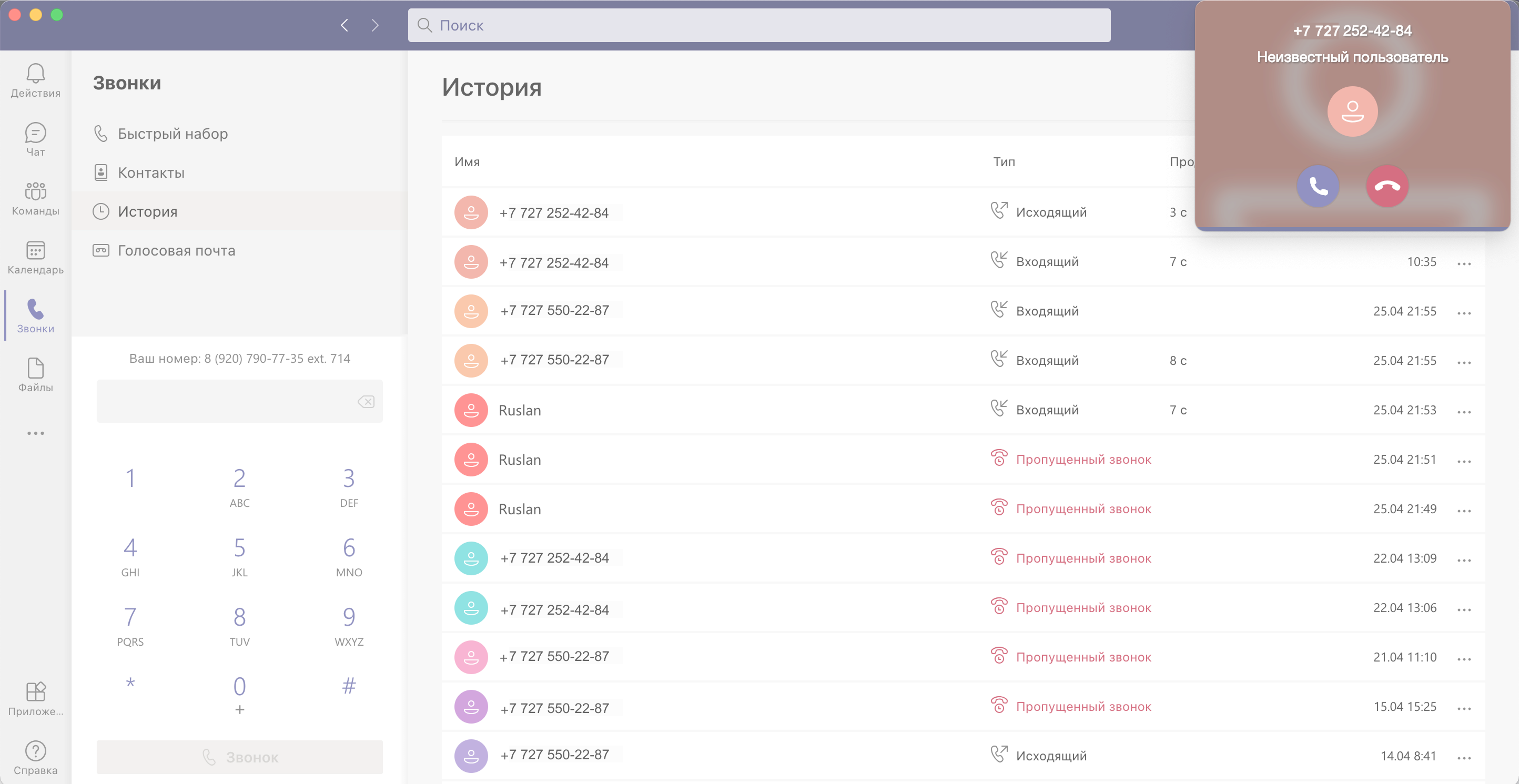 Теперь звонки ваших сотрудников будут приходить не только на IP-телефоны, но и в приложение Microsoft Teams. Используйте Microsoft Teams как SIP-софтфон для вашей Виртуальной АТС.
