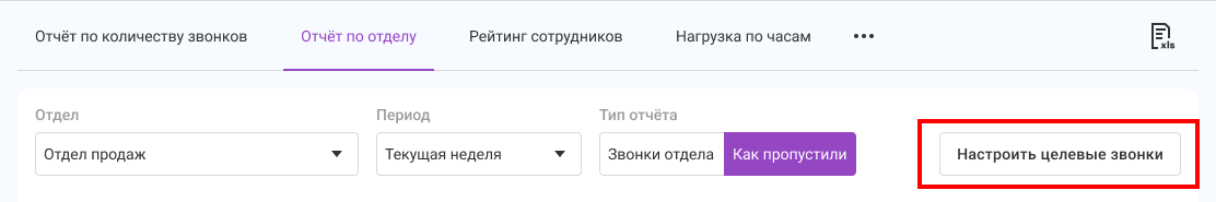 По умолчанию целевыми считаются звонки длительностью от 1 мин. 30 сек. Чтобы это изменить, нажмите на кнопку «Настроить целевые звонки».