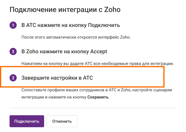 Инструкция по интеграции Zoho CRM и АТС