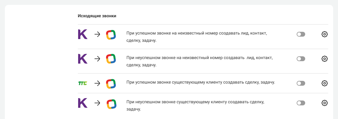 Вы можете настроить сценарии интеграции отдельно для входящих звонков.